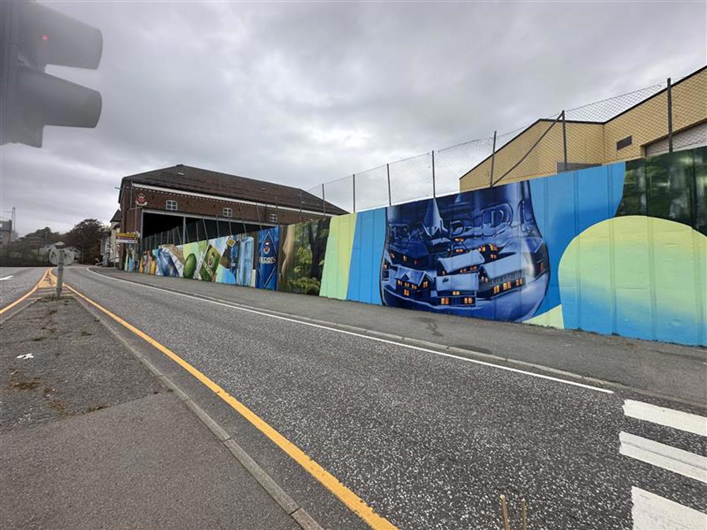 Endelig har den grå betongmuren langs veien ved Farris-fabrikken fått en etterlengtet makeover I anledning Farris sitt 110-årsjubileum har Ringnes valgt å gjøre noe helt spesielt med den 280 kvadratmeter store flaten – og resultatet er både fargerikt og historisk.